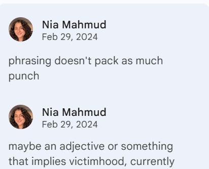 A part of publishing I enjoy less comes back to how I started this essay: actually talking about it. When discussing my work, I resist the urge to overexplain it. I am not the narrator, I am the author, and my collection is clear enough on its own. And I’m proud of my work, all my painstaking edits. The truth about this period of time is something I don’t give often. I scribbled on the margins of my manuscript while on a road trip. The canned coffee Isabella and I bought the day before was lukewarming in the cupholder beside me, and the music playing must have been on repeat all summer. Faye Webster, SZA, various artists that don’t transport me back to the car with my pink pen in hand until I hear the specific song again. Editing and living at the same time allowed the collection to be what I wanted it to be. I don’t know how to put this in a blurb.